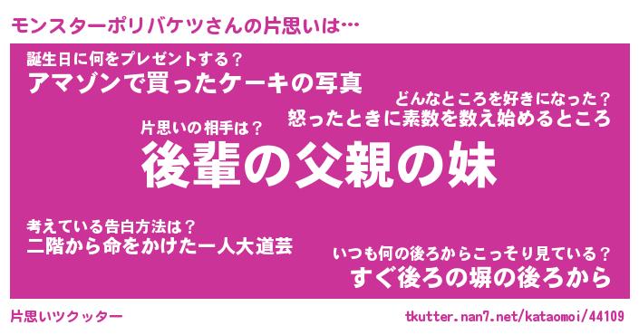 | ツイッター | モンスターポリバケツさんのツイッターID『namakemono_star』 |