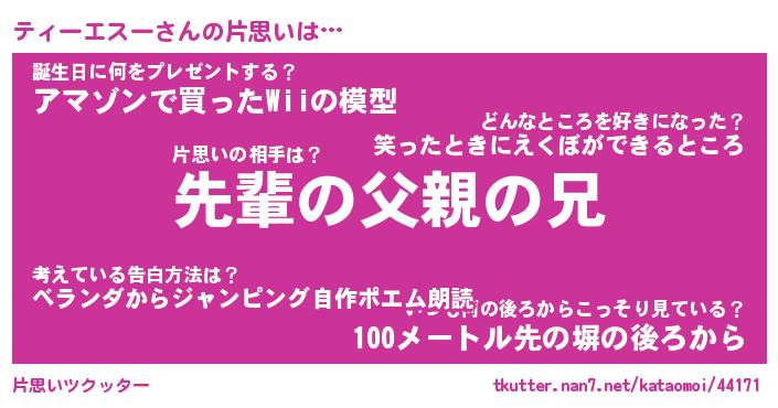 | 胡散臭い通販商品みたいなあだ名 | 『モテモテ間違いなし水晶球…その名も「ティーエスー」』 |