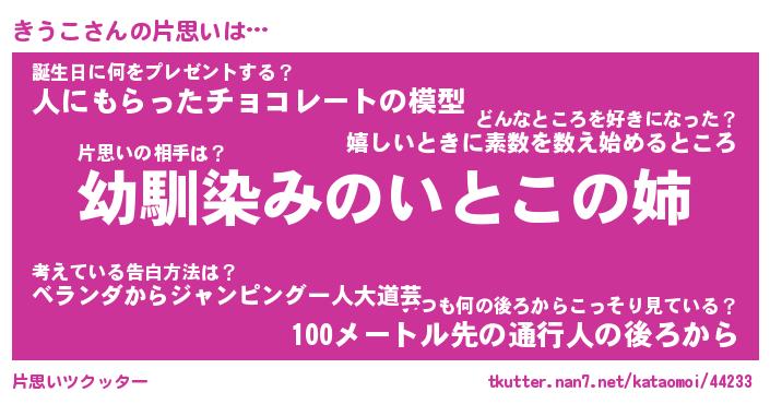 | 男性向けラノベタイトル風あだ名 | 『きうこの憂鬱』 |