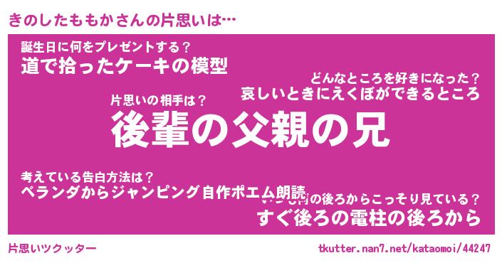 | 女子向けラノベタイトル風あだ名 | 『誰かこのきのしたももかを説明してください! ~契約から始まるウェディング~』 |