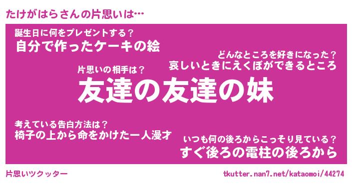 | ヘコむあだ名 | 『たけっふぃ~』『豆乳』『たけお』 |