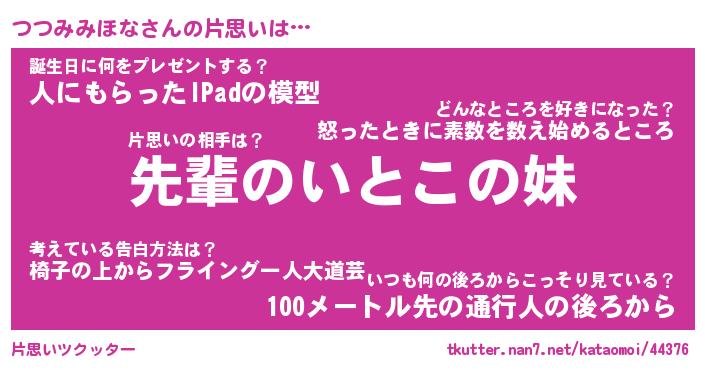 | ヒーロー風カッコイイあだ名 | 『スーパーツツミミホナ』『魔戒騎士ツツ』 |