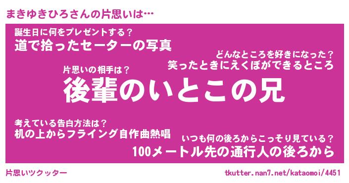 | 胡散臭い通販商品みたいなあだ名 | 『モテモテ間違いなし水晶球…その名も「まきゆきひろ」』 |