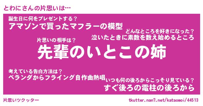 | ヘコむあだ名 | 『とわもー』『つくし』『とわぷりん』 |
