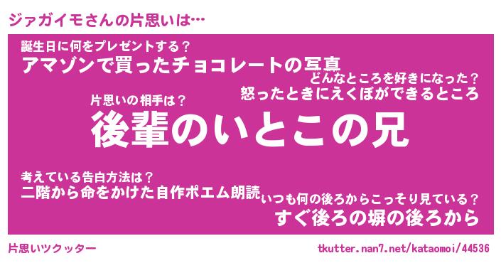 | ヘコむあだ名 | 『ジァもー』『なまこ酢』『ジァを』 |
