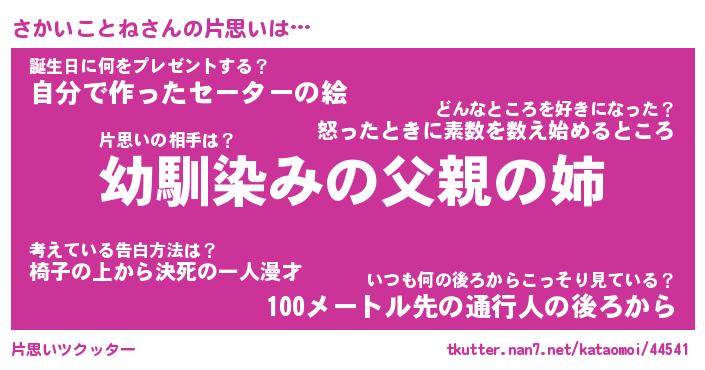 | 男性向けラノベタイトル風あだ名 | 『さかいことねの憂鬱』 |