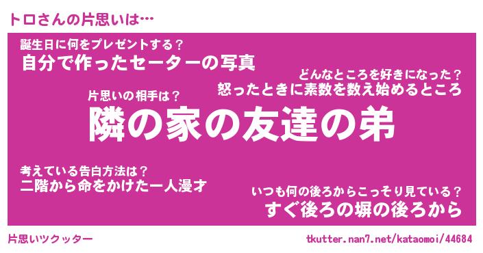 | 2回繰り返すあだ名 | 『トロトロ』『トトロロ』『くらくら』 |