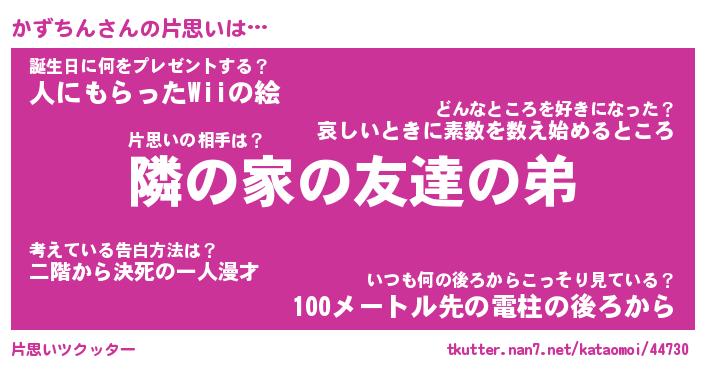 | 男性向けラノベタイトル風あだ名 | 『かずちんの憂鬱』 |