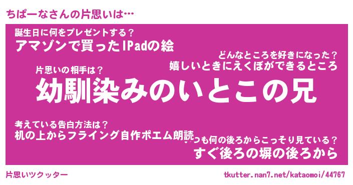 | 2回繰り返すあだ名 | 『ちぱちぱ』『ちちぱぱ』『こつこつ』 |