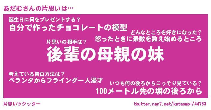 | ヘコむあだ名 | 『あだふぇ~』『つくし』『あだお』 |