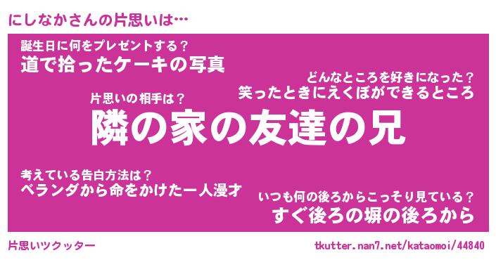 | 男性向けラノベタイトル風あだ名 | 『にしなかの憂鬱』 |