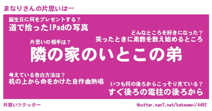 | ヘコむあだ名 | 『まなにゅー』『豆乳』『まなを』 |