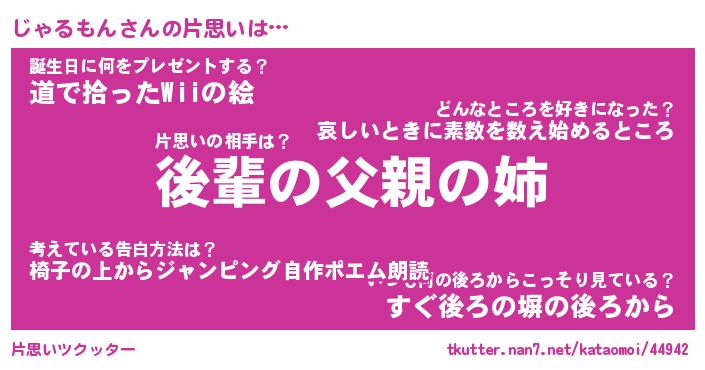| ヘコむあだ名 | 『じゃにゅー』『牛乳』『じゃっぺ』 |