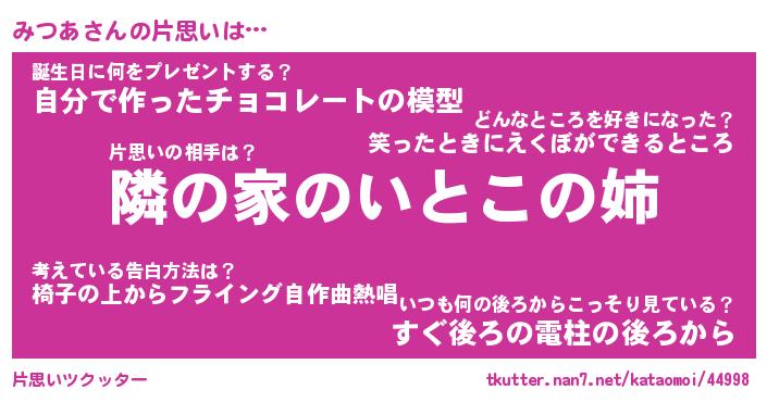 | 胡散臭い通販商品みたいなあだ名 | 『モテモテ間違いなし水晶球…その名も「みつあ」』 |