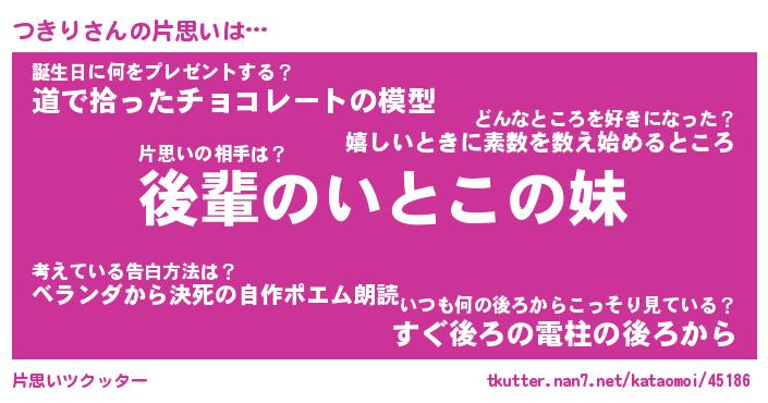 | ヘコむあだ名 | 『つきもー』『豆乳』『つきっちょ』 |