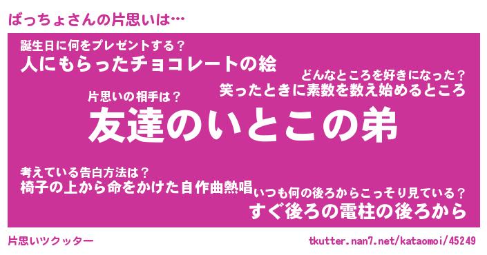 | ヘコむあだ名 | 『ばっもー』『酢こんぶ』『ばっ太郎』 |