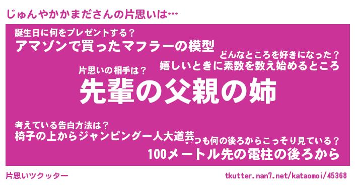 | 男性向けラノベタイトル風あだ名 | 『じゅんやかかまだの憂鬱』 |