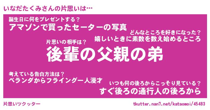 | 恥ずかしいあだ名 | 『プリティーいなだたくみ』『いなっちょ』 |