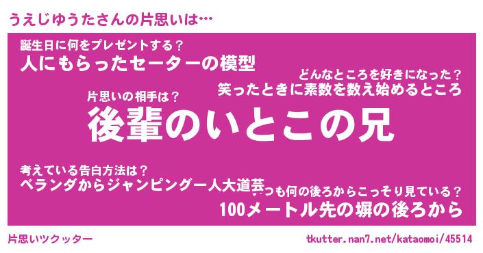 | ヒーロー風カッコイイあだ名 | 『スーパーウエジユウタ』『暗黒騎士ウエ』 |