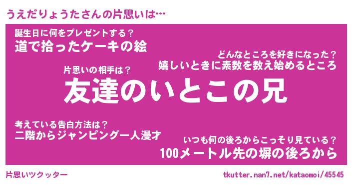 | ヘコむあだ名 | 『うえにゅー』『牛乳』『うえ太郎』 |
