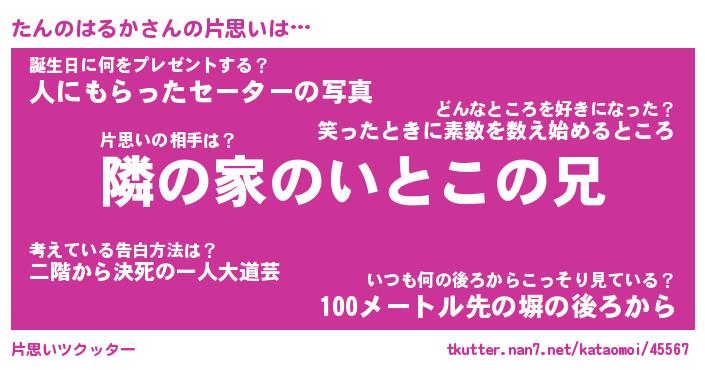 | 男性向けラノベタイトル風あだ名 | 『たんのはるかの憂鬱』 |
