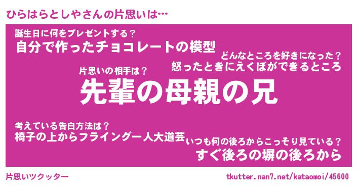 | ヒーロー風カッコイイあだ名 | 『スーパーヒラハラトシヤ』 |