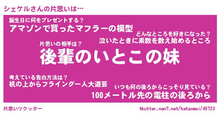 | 意味不明あだ名 | 『ペロリンシェケル』『永久保存シェケル』 |