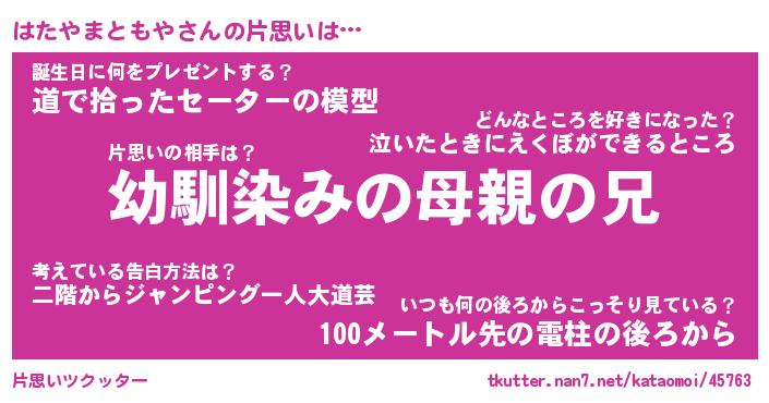 | ヘコむあだ名 | 『はたにー』『つくし』『はた太郎』 |