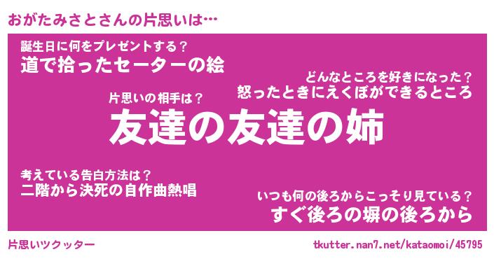 | 伝説のあだ名 | 『封印されしスナイパーおがたみさと』 |