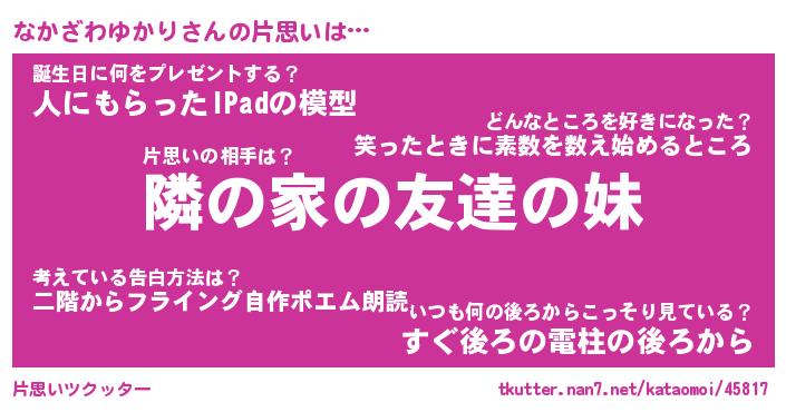 | 男性向けラノベタイトル風あだ名 | 『なかざわゆかりの憂鬱』 |