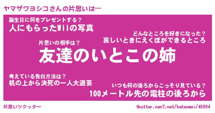 | 女子向けラノベタイトル風あだ名 | 『誰かこのヤマザワヨシコを説明してください! ~契約から始まるウェディング~』 |