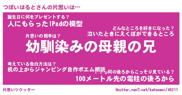 | ヘコむあだ名 | 『つぼにー』『豆乳』『つぼっちょ』 |