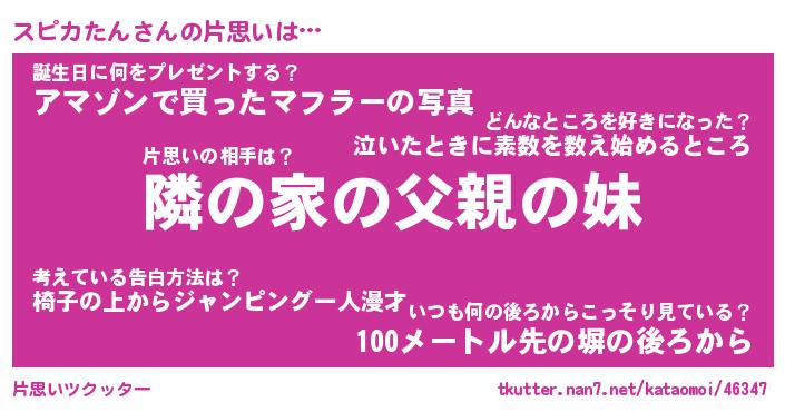 | ファンタジー風あだ名 | 『スピフェル』『エターナルスピカタンー』 |