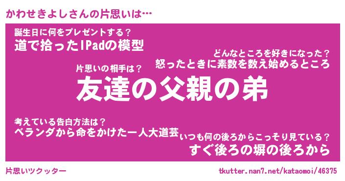 | ヘコむあだ名 | 『かわふぇ~』『牛乳』『かわっちょ』 |