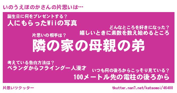 | 男性向けラノベタイトル風あだ名 | 『いのうえほのかの憂鬱』 |