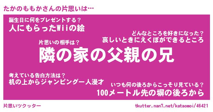 | 胡散臭い通販商品みたいなあだ名 | 『必ず成功する水晶球…その名も「たかのももか」』 |