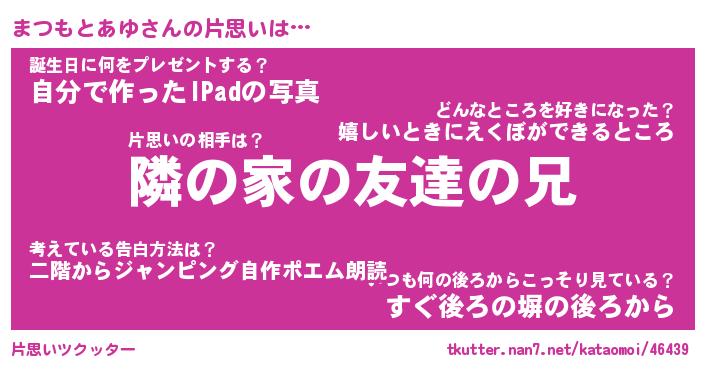 | 恥ずかしいあだ名 | 『プリティーまつもとあゆ』『まつっちょ』 |