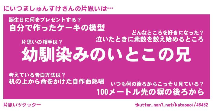 | 男性向けラノベタイトル風あだ名 | 『にいつましゅんすけの憂鬱』 |