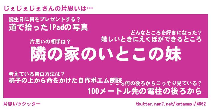 | ヘコむあだ名 | 『じぇもー』『豆乳』『じぇを』 |