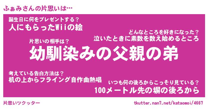 | 胡散臭い通販商品みたいなあだ名 | 『必ず成功するブレスレット…その名も「ふぁみ」』 |