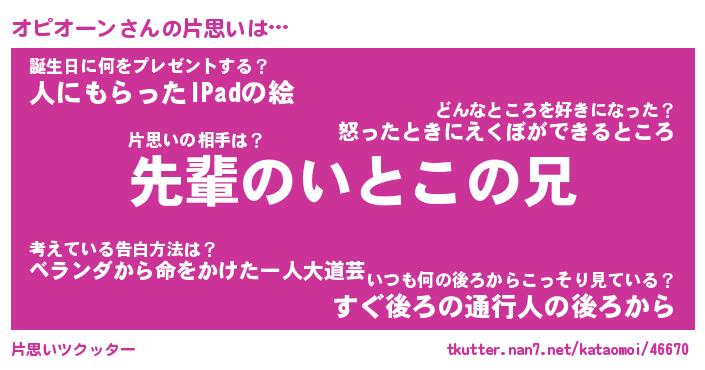 | ヘコむあだ名 | 『オピもー』『豆乳』『オピっちょ』 |