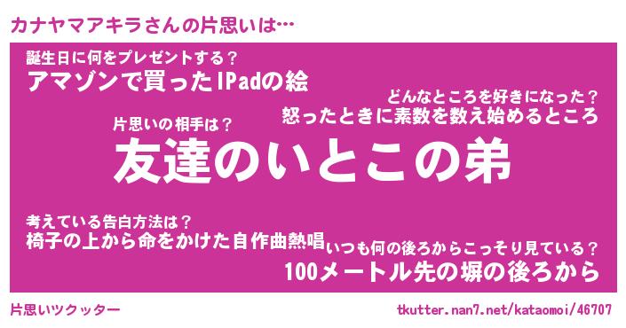 | 恥ずかしいあだ名 | 『プリティーカナヤマアキラ』『カナちん』 |