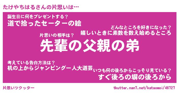 | 男性向けラノベタイトル風あだ名 | 『たけやちはるの憂鬱』 |