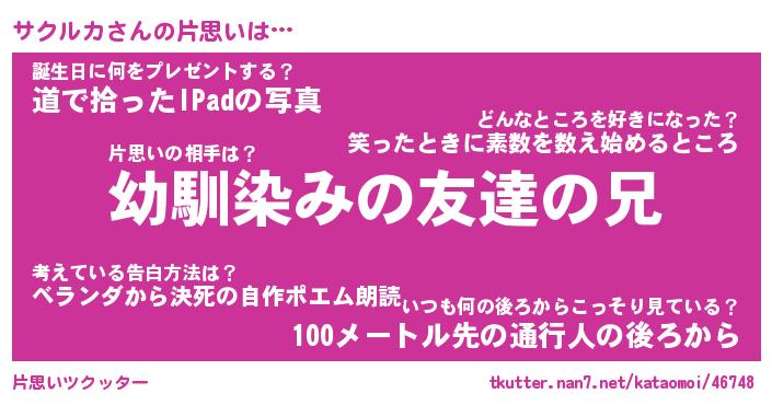 | 男性向けラノベタイトル風あだ名 | 『サクルカの憂鬱』 |