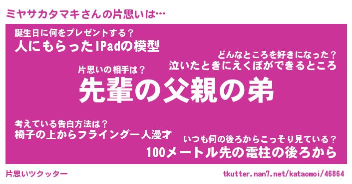 | 胡散臭い通販商品みたいなあだ名 | 『モテモテ間違いなし水晶球…その名も「ミヤサカタマキ」』 |