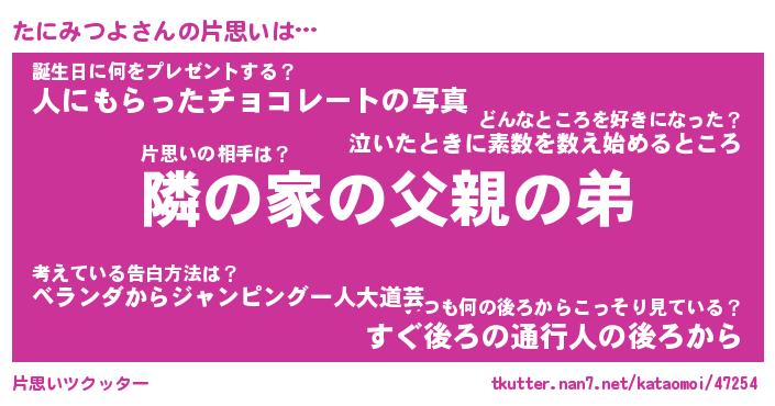 | 胡散臭い通販商品みたいなあだ名 | 『モテモテ間違いなし水晶球…その名も「たにみつよ」』 |