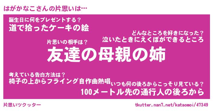 | 胡散臭い通販商品みたいなあだ名 | 『億万長者になれるブレスレット…その名も「はがかなこ」』 |