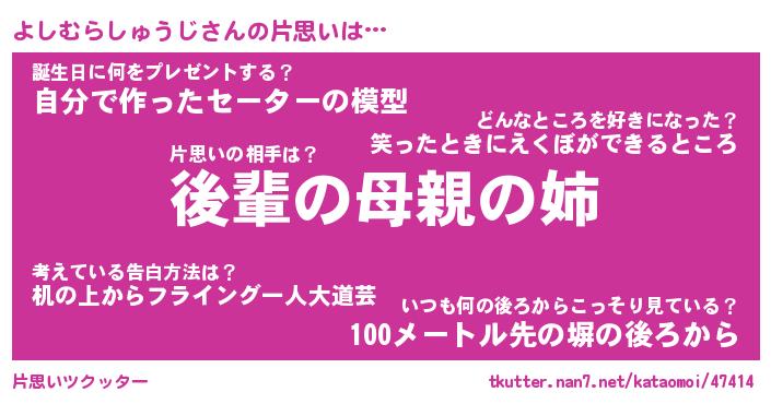 | 肩書あだ名 | 『よしむらしゅうじ社長』 |