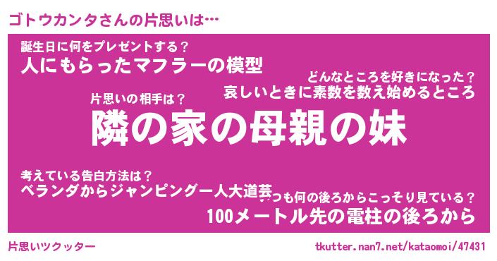 | ヘコむあだ名 | 『ゴトにー』『酢こんぶ』『ゴトを』 |