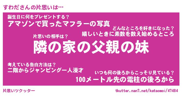 | ヘコむあだ名 | 『すわにゅー』『酢こんぶ』『すわお』 |